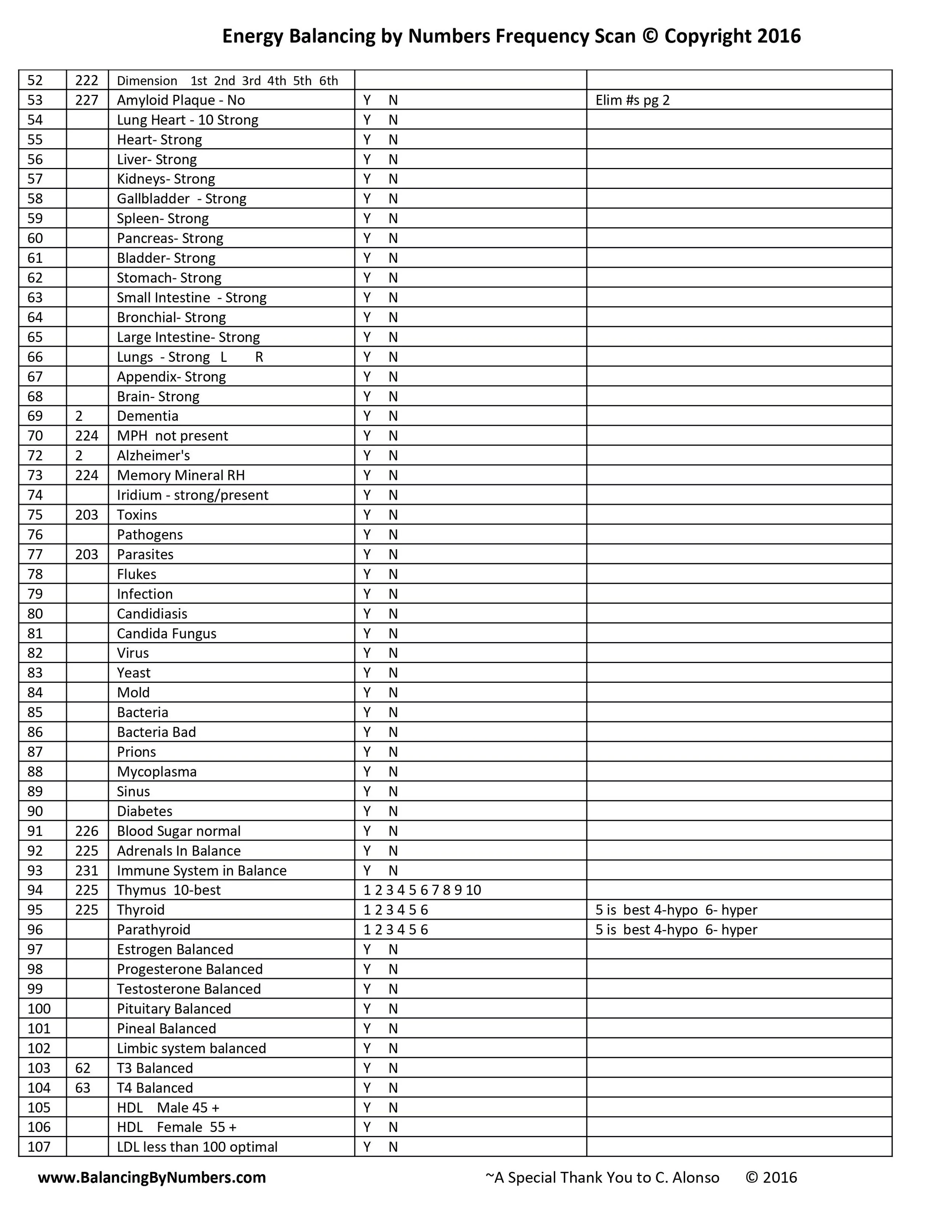 Lloyd would use this checklist to scan a client. He could accomplish this in about 15 mins working mostly from the subconscious mind.